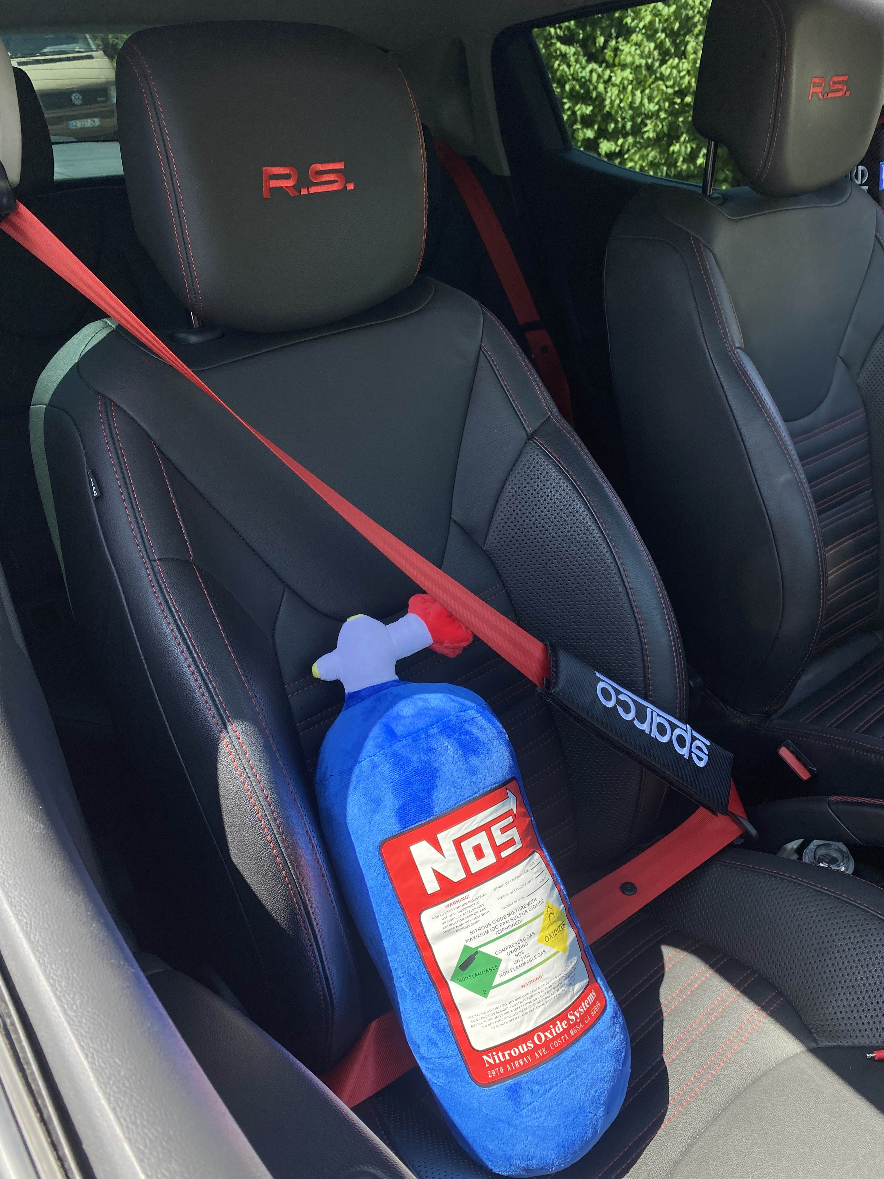 Tu peux mettre le doudou entre les sièges comme la vraie bouteille de nitro dans Fast and Furious, effet garanti pour les passagers !