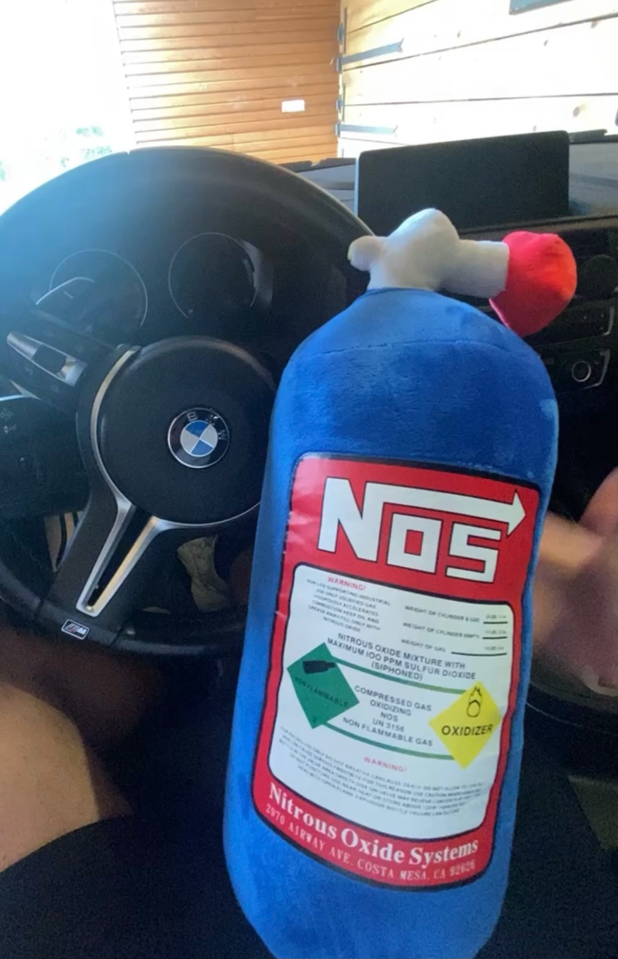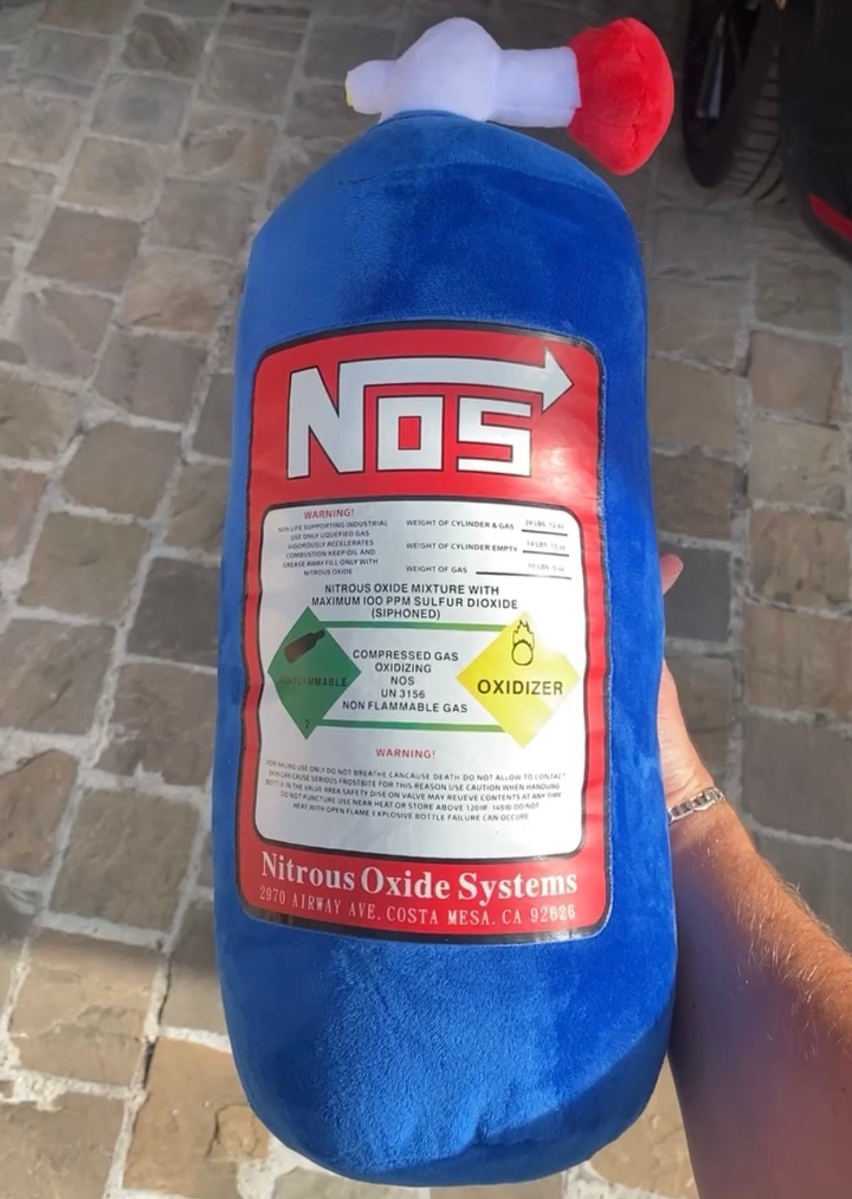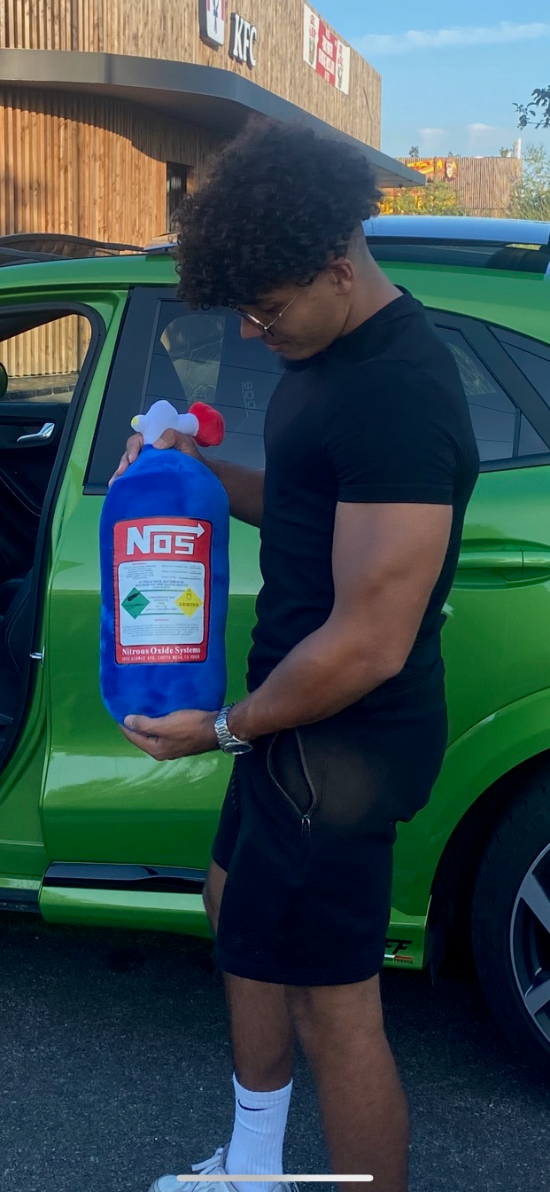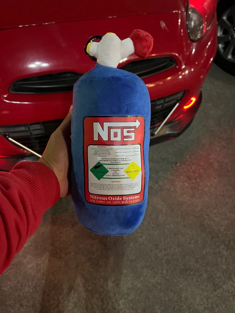 - Conception réaliste : Notre peluche reproduit fidèlement l'apparence d'une bouteille de protoxyde d'azote NOS, un élément emblématique de la culture automobile.